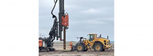 Einrammen der Verankerung für die schwimmende PV-Anlage auf dem Cottbuser Ostsee Quelle: Leag / Jan Gloßmann |
