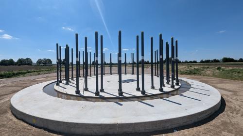 Das Fundament zweier Windkraftanlagen in Nossen-Eulitz nahe Dresden ist bereits gegossen. Darauf entstehen bis Ende dieses Jahres zwei Enercon-Anlagen des Typs E-160 mit einer Nabenhöhe von je 166