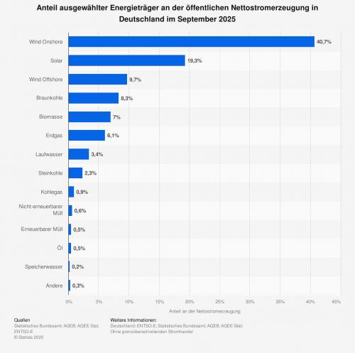 September 2025 haben die Windenergieanlagen an Land knapp 41