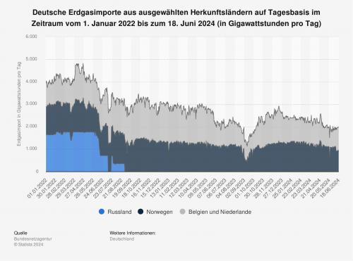 Neben Erdöl dient Erdgas in Deutschland nach Angaben der Bundesnetzagentur als zentraler Brennstoff für die Primärenergieerzeugung. Da die nationale Erdgasförderung äußerst gering ausfällt, ist das Land auf Einfuhren aus dem Ausland angewiesen. Norwegen ist aktuell die wichtigste Erdgasbezugsquelle für Deutschland, nachdem Russland im Laufe des Jahres 2022 seine Erdgasexporte über die Nord-Stream-1-Pipeline systematisch drosselte und Ende August 2022 vollständig einstellte.