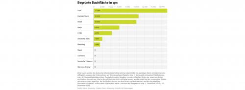 Quadratmetern grüner Dachfläche zwar auf dem letzten Platz des Rankings landet, kann 419 Quadratmeter PV-Fläche vorweisen. Der Rest der verfügbaren Dachfläche werde für Technik oder Laufwege benötigt. Und die Deutsche Bank, die mit 2.000 Quadratmetern auf dem vorletzten Rang platziert ist, hat 360