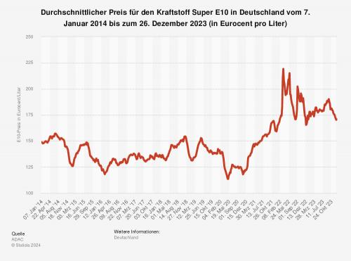 Dezember 2023 kostete ein Liter Super E10 nach Angaben des ADAC durchschnittlich 170,7