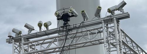 Die Kameras des Rotmilan-Anti-Kollisions-Systems im Windkraft-Testfeld auf der Alb Quelle: E&M / Georg Eble |