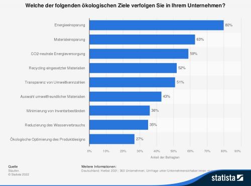 In einem von der Staufen AG erhobenen Change Readiness Index 2022 gaben 80 % der befragten Inhaber und Manager an, in ihrem Unternehmen das ökologische Ziel der Energieeinsparung zu verfolgen.