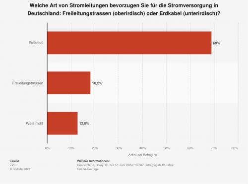 Prozent der befragten Deutschen unterirdische Erdkabel vor oberirdischen Freileitungen. Etwa 18