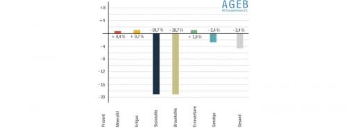 Die deutlichen Veränderungen in der Struktur des Energieverbrauchs, vor allem der weitere Rückgang bei der Kohle, hat nach Einschätzung der AG Energiebilanzen im ersten Halbjahr zur Einsparung von 17