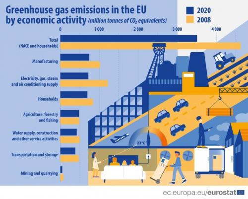 Die Treibhausgasemissionen in der EU sind zwischen 2008 und 2020 um fast ein Viertel zurückgegangen, so das EU-Statistikamt Eurostat.