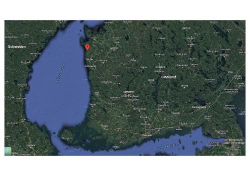 Der rote Pin zeigt die finnische Küstengemeinde Korsnäs. Vor ihr soll Vattenfall Finnlands ersten großen Offshore-Windpark errichten (zum Vergrößern bitte auf die Karte klicken) Quelle: Google Maps |