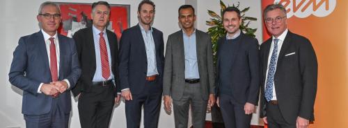Bisherige und künftige EVM-Vorstände (von links): Josef Rönz, Dr. Karlheinz Sonnenberg, Christoph Hesse, Mithun Basu, OB David Langner, Bernd Wieczorek Quelle: EVM / Seydel |