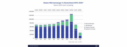 Der Rückgang betrifft demnach speziell konventionelle Systeme: Der Absatz von öl- und gasbasierten Heizungen brach um bis zu 81 Prozent ein. Wärmepumpen hingegen legten um 55 Prozent auf 139.500 verkaufte Geräte zu, Biomasseheizungen um 42 Prozent. Erstmalig wurden im ersten Halbjahr 2025 mehr Wärmepumpen als Gasheizungen verkauft. Trotz des Wachstums bleibt die Wärmepumpe damit deutlich hinter dem politischen Ziel der Bundesregierung zurück. Diese hatte ab 2024 eine jährliche Installationsrate von 500.000 Geräten angestrebt.