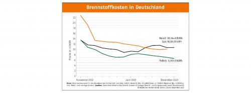 Brennstoffkosten seit November 2022 bis Dezember 2023 im Vergleich (zum Vergrößern bitte auf die Grafik klicken) Quelle: Deutsches Pelletinstitut GmbH |