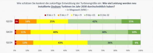 Die Windkraft-Branche geht weiter davon aus, dass die installierte Leistung von Onshore-Windenergieanlagen, die 2030 installiert werden, im Schnitt größer ist als heutzutage. Die Umfrage „Wind Energy Trend Index“ (Wetix), die im zweiten Quartal 2024 durchgeführt und im Juli 2024 veröffentlicht worden war, ergab einen weltweiten Durchschnittswert von 8,3