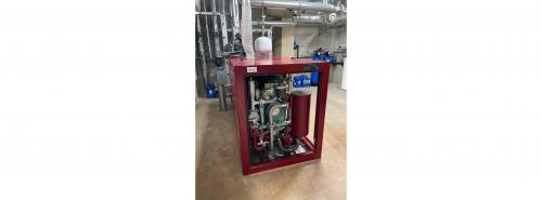 Das Blockheizkraftwerk mit einer elektrischen Leistung von 50 kW und einer thermischen von 110 kW wird mit Biomethan betrieben und von einem Holzpelletkessel unterstützt. Zur Deckung hoher Kühllasten im Sommer wurde von der EDG zusätzlich ein Kältesystem installiert. Hierzu gehört auch eine Adsorptionskälteanlage mit einer Leistung von 75 kW. Die beiden Aggregate mit jeweils 120 kW thermischer Kälteleistung arbeiten mittels Direktverdampfung von Wasser in einem vakuumdicht geschlossenen Kreislauf, der über Wärmetauscher hydraulisch vom Rückkühler und von den Kälteverbrauchern getrennt ist. Sowohl auf der Wärme- als auch auf der Kälteseite sind große Pufferspeicher mit jeweils 15.000 Liter Volumen in das Versorgungssystem integriert.
