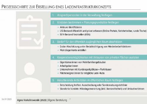 September in einem Webinar präsentiert. Kommunen sollten frühzeitig ein Gesamtkonzept entwickeln und den Aufbau von Ladeinfrastruktur durch Privathaushalte, Wohnungsbaugesellschaften, Arbeitgeber, Handel, Gewerbe und Flächeneigentümer anregen. Bund und Länder könnten diese Entwicklung auf Ebene der Städte und Gemeinden gezielt fördern, forderte Agora Verkehrswende zugleich.