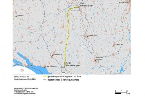 Netzverstärkung zwischen Bayern und Baden-WürttembergDas Vorhaben 25 soll die Übertragungskapazität zwischen Baden-Württemberg und Bayern erhöhen. Der Transportbedarf ist im Rahmen der Energiewende gestiegen. Die Maßnahme ist als Zu- und Umbeseilung vorgesehen. Das heißt, neue Leiterseile werden auf bereits vorhandene Strommasten aufgelegt und bestehende Leiterseile ausgetauscht. Nach der Fertigstellung trägt die Leitung zwei 380-kV-Stromkreise. Die Leitung geht voraussichtlich 2027 in Betrieb.