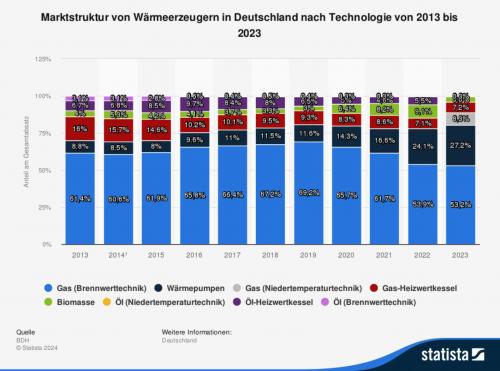 Prozent auf Wärmeerzeuger mit Gas-Brennwerttechnik. Der Anteil von Wärmepumpen am Gesamtabsatz von Wärmeerzeugern lag derweil bei etwa 27,2