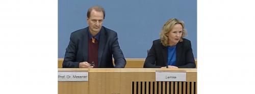 UBA-Präsident Dirk Messner und Bundesumweltministerin Steffi Lemke bei der Präsentation des Berichts zur Klimaanpassungsstrategie Quelle: E&M/S.Harmsen |