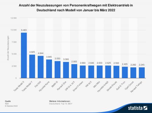 Der Fiat 500 gehört in Deutschland zu den beliebtesten Pkw-Modellen mit reinem Elektroantrieb: Von Januar bis März des Jahres 2022 wurden in Deutschland rund 4.600 Exemplare des Kleinwagens mit Batterieelektroantrieb neu zugelassen.