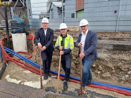 Spatenstich für die Abwärmeleitung in Rheinfelden mit Hermann Becker, Andreas Vogt und Klaus Nerz (v.l.). Quelle: Energiedienst |