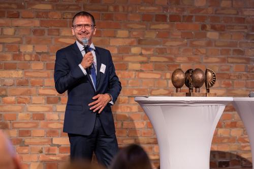 In seiner Laudatio würdigte der Parlamentarische Staatssekretär beim Bundeswirtschaftsministerium (BMWK), Michael Kellner, den Einsatz des Preisträgers für die nationale wie auch internationale Energiewende. Er sei zugleich Bundestagsabgeordneter der Grünen für die Region Uckermark, von daher freue es ihn besonders, dass eine Persönlichkeit aus seinem Wahlkreis mit dem Preis „Energiemanager des Jahres“ ausgezeichnet wurde, sagte Kellner. Es sei eine unglaubliche Leistung, was Hering und alle Mitarbeiter von Enertrag aufgebaut hätten. „Dafür meinen aller-, allergrößten Respekt“, sagte der Parlamentarische Staatssekretär unter dem Beifall der Gäste.