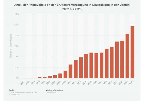Die Nutzung von Photovoltaikanlagen gewinnt mit den Jahren immer mehr an Bedeutung. So nahm der Anteil des regenerativen Energieträgers Sonne seit dem Jahr 2003 kontinuierlich zu.