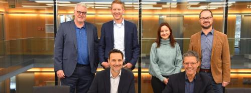 Im Dezember 2023 wurden die Verträge unterzeichnet. In der hinteren Reihe von links: Rechtsanwalt Matthias Weise (Terra Consulting GmbH), Daniel Köpf (EnBW Contracting GmbH), Anastasia Mitrou (Sachgebietsleitung Hochbau), Michael Bauer (Beigeordneter); vordere Reihe von links: Matthias Schnerring (EnBW Contracting) und Wernaus Bürgermeister a. D. Armin Elbl Quelle: Stadt Wernau |