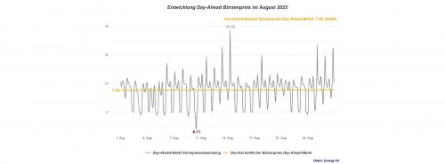 Der durchschnittliche Strompreis im August für den nächsten Tag (Day-Ahead) lag an der Strombörse bei 7,6