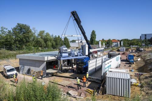 Wärmepumpen liefern bald Wärme ins Dresdner Fernwärmenetz: Mit einem großen Kran wurden am 13.