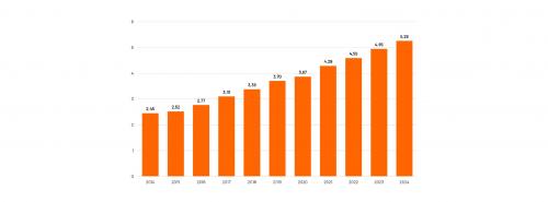 Entwicklung der Umsätze von 2014 bis 2024 (in Mrd. Euro) (Zur Vollansicht bitte auf die Grafik klicken) Quelle: Vedec |