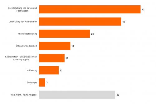 Eine zunehmende Rolle spielt die kommunale Wärmeplanung. Energiedienstleister sind mit zahlreichen Kommunen im Austausch und unterstützen diese vor allem mit der Bereitstellung von Daten und Fachwissen. Neben der Umsetzung konkreter Maßnahmen sind sie in der Akteursbeteiligung und Öffentlichkeitsarbeit eingebunden und übernehmen häufig die Koordination von Arbeitsgruppen.