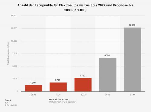 Millionen Ladepunkte für E-Autos geben. Im Jahr 2022 gab es schätzungsweise rund 2,7