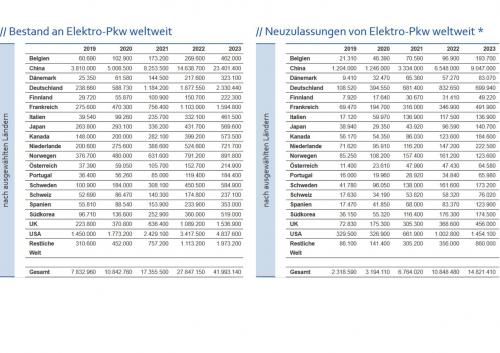 Stand der Elektroautozulassungen in ausgewählten Ländern 2019-2023 - Zur Vollansicht bitte auf das Bild klicken Quelle: ZSW |