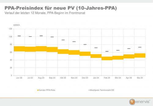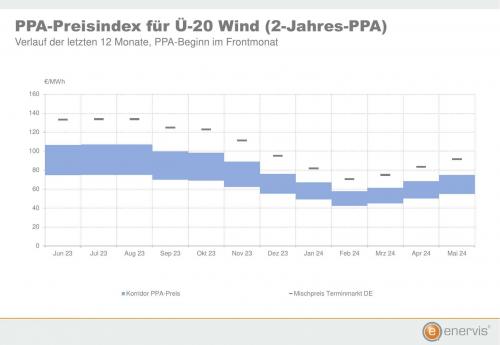 Die Preiskorridore für marktübliche Power Purchase Agreements haben im Mai erneut angezogen. Das ergibt der PPA-Preisindex von E&M und Enervis.
