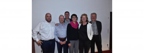 | Als Vorstand des Landesverbandes Erneuerbare Energie Rheinland-Pfalz/Saarland wurden bestätigt: Christoph Zeis als Vorsitzender (2.v.l.) sowie die stellvertretenden Vorsitzenden Gerd Schöller, Stefan Lausberg und Gabriele Schmidt (v.l.n.r.). Den Vorstand komplettiert Kassenwart Matthias Boller. Mit auf dem Bild ist LEE-Geschäftsführerin Gabriele Rau Quelle: LEE / Dr. Martin Frey |
