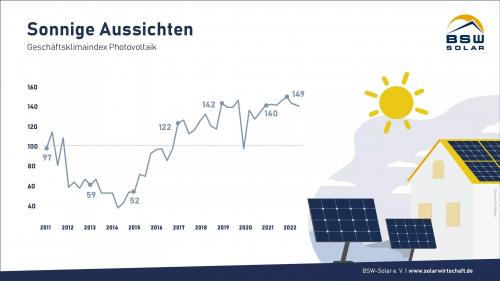 Große Teil der deutschen Wirtschaft zittern vor der drohenden Rezession, doch der PV-Branche geht es – auch perspektivisch – ausgezeichnet. „Die Auftragsbücher in der Solarbranche sind gegenwärtig gut gefüllt“, teilte der Bundesverband der Solarwirtschaft (BSW) bei der Vorstellung des Photovoltaik-Branchenbarometers für das dritte Quartal 2022 mit. In diesem Jahr seien bereits mehr neue Solarstromanlagen in Betrieb genommen als im gesamten Jahr 2021 insgesamt.