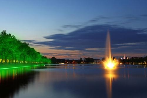 Im Rahmen der Bundesfeierlichkeiten zum Tag der Deutschen Einheit, haben die Stadtwerke Schwerin und GP Joule 45 Bäume am Westufer des Schweriner Pfaffenteichs illuminiert.