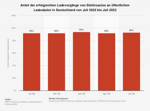 Prozent aller Ladeversuche von E-Autos an öffentlichen Ladesäulen erfolgreich gewesen. Die Erfolgsquote von Ladeversuchen lag im vergangenen Jahr beständig bei über 90