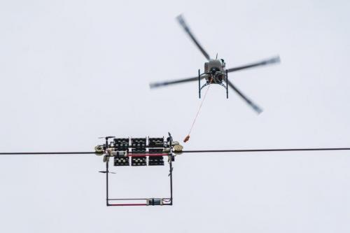 Der Übertragungsnetzbetreiber Tennet entwickelt eine Drohne, die künftig Induktionsströme und elektromagnetische Felder messen und sichtbar machen soll. Durch den Einsatz von Drohnen sollen der Ausbau, Betrieb und Instandhaltung des Stromnetzes beschleunigt und optimiert werden – ohne den laufenden Netzbetrieb unterbrechen zu müssen. Für Tennet verbirgt sich enormes Potenzial: Immerhin betreibt der Netzbetreiber allein in Deutschland zwischen Schleswig-Holstein und Bayern ein Stromnetz mit einer Gesamtlänge von über 13.500 Kilometern. Spezialisierte Drohnen können laut Tennet Aufgaben wie den Vorseilzug oder die Inspektion von Isolatoren und Leiterseilen übernehmen. In Kombination mit Robotik-Lösungen könne etwa die Installation von Vogelschutzmarkern − wie im Bild zu sehen ist − und Abstandshaltern beschleunigt werden. Monteurinnen und Monteure sollen durch den Einsatz der Drohnentechnologie zudem bei ihrer Arbeit entlastet werden.