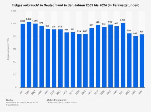 TWh Erdgas verbraucht. Im Vergleich zum vorangegangenen Jahr bedeutet das einen Zuwachs um etwa 3,3