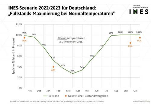 Ines modelliert fortlaufend die europäischen Gasmärkte, um die Sicherheit der Gasversorgung einzuschätzen. Auf dieser Basis und unter Berücksichtigung der Speicherfüllstände zum 1. November 2022 waren drei Szenarien für die Gasversorgung in Deutschland im Winter 2022/2023 und für die anschließende Befüllung der Gasspeicher vor dem Winter 2023/2024 betrachtet worden. Dem ersten Szenario werden die Temperaturen des EU-Wetterjahres 2016 länderspezifisch zugrunde gelegt, um normale Temperaturen zu betrachten. Ein weiteres Szenario nimmt warmes Wetter wie im europäischen Winter 2020 an. Ein drittes Szenario untersucht die Gasversorgung bei kaltem Wetter entsprechend dem europäischen Winter 2010.