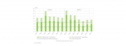 Euro/Kilogramm. Das Preisniveau lag damit weiterhin unterhalb des strommarktbasierten Wasserstoffs sowie der Insellösung aus Erneuerbaren-Energie-Anlage und Elektrolyseur.