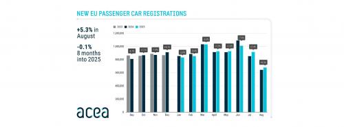 Die Zahl der Pkw-Neuzulassungen in der Europäischen Union bewegte sich in den ersten acht Monaten 2025 auf Vorjahresniveau. Nach Angaben des Herstellerverbandes European Automobile Manufacturers’ Association (ACEA) ging das Gesamtvolumen im Vergleich zu 2024 lediglich um 0,1