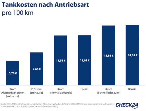 Im Vergleich: Tankkosten nach Antriebsart Quelle: Check 24 |