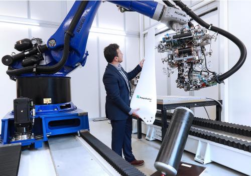 Auch hier bietet das Team aus der Lausitz eine interessante Lösung. Die Tanks werden aus Carbonfaserstreifen hergestellt, die auf einen zylindrischen Körper aufgewickelt werden. Mit Kunstharz getränkt, härten diese dann zu einem Tank aus, der viele hundert Bar Druck aushält. Um Leckagen zu detektieren, bauen die Experten in den Behälter zugleich Sensoren ein. „Aktuell arbeiten wir mit 3D-Druckern, die elektrisch leitfähige Tinten verarbeiten können“, erläutert Marcello Ambrosio. Diese arbeite man direkt in den Faserverbundwerkstoff ein. Selbst kleine elektronische Bauteile können die Forscher so in die Tankwand integrieren. Dieses Frühwarnsystem sei eine wichtige Voraussetzung für einen künftigen sicheren Einsatz beim Endkunden.