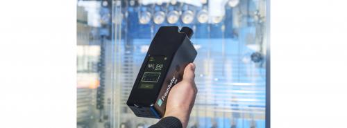 Das Laserspektrometer des Fraunhofer IPM absorbiert die Wellenlänge von Ammoniak, reagiert deshalb sofort und zeigt das Ergebnis auf einem Display an Quelle: Fraunhofer IPM |