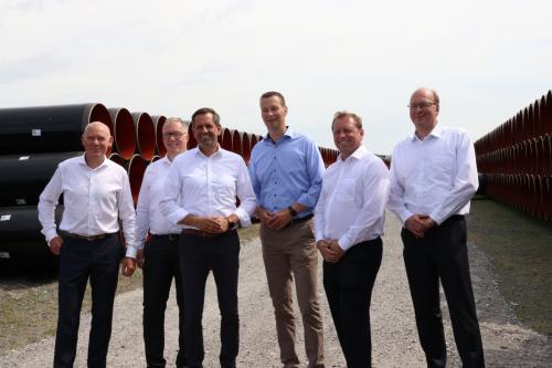 "In neuer Deutschlandgeschwindigkeit“ werde laut Minister Olaf Lies (3. von links) die Leitung realisiert Quelle: OGE |