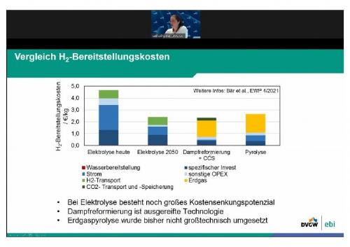 Euro pro Kilogramm Wasserstoff zu Buche schlagen. Dieser Wert sei jedoch, so Bär, mit großer Unsicherheit behaftet, da das Verfahren noch nicht großtechnisch umgesetzt wurde. Abweichungen bei Investitions- und Betriebskosten seien möglich. Die Kosten für die Methanreformierung mit CCS seien dagegen gut ermittelbar. "Jedoch will kaum einer CO2 unter seinen Füßen haben", erklärte Bär die bestehenden Akzeptanzprobleme in Deutschland.
