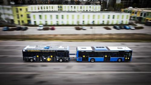 Ein Buszug der Münchner Verkehrsgesellschaft (MVG) ist künftig mit Solarzellen auf dem Dach im Linieneinsatz unterwegs. Das Münchner Start-up Sono Motors hat die Photovoltaik-Anlage entwickelt. Die Anlage ist auf dem Anhänger eines Buszuges, also einem Gespann aus Zugfahrzeug und Busanhänger, installiert.