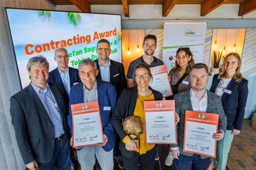 Für den Contracting Award eingereicht werden konnten Projekte, die in den mittleren Leistungsbereich fallen und neue Ideen für die Energielieferung oder bei Kooperationsformen entwickelt haben. Eine Jury aus Expertinnen und Experten von Vedec und E&M haben sie bewertet. Beurteilt und prämiert wird nicht vorrangig die Technik, sondern auch das übergreifende Organisations- und Betreibermodell, das sich auch auf die Übernahme und optimierende Betriebsführung vorhandener Altanlagen beziehen kann.