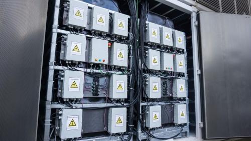 und verwendet dazu 72 Batterien aus dem Renault-Elektroauto Zoe als Energiespeicher für das Stromnetz.